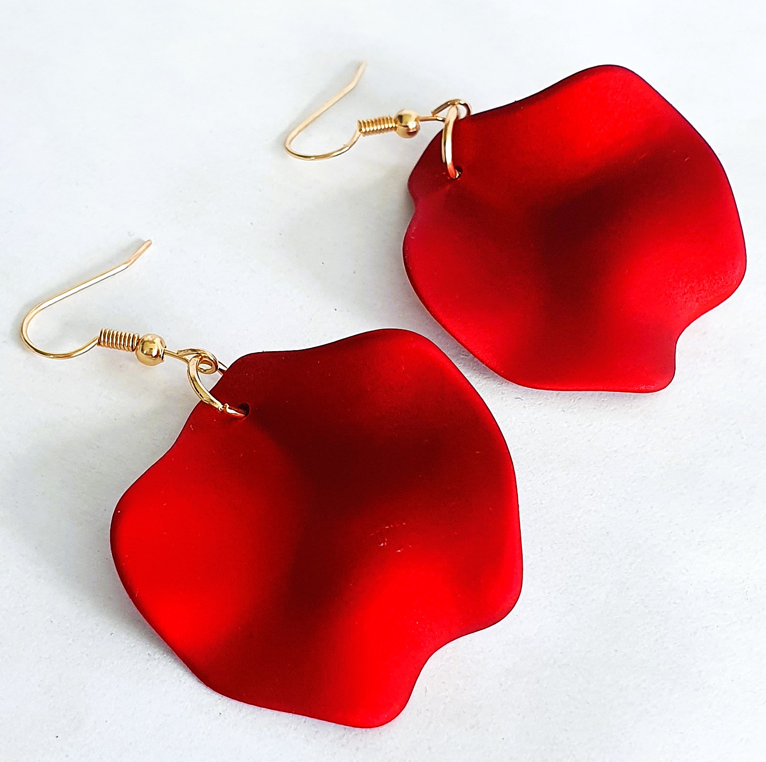 Discover the earrings that play with light! Our red petal drop earrings have a pearlised finish that shifts to black as they move. Gold-plated, lightweight, and perfect for all-day wear. Now R100! Free delivery in Pretoria East. Nationwide shipping available.